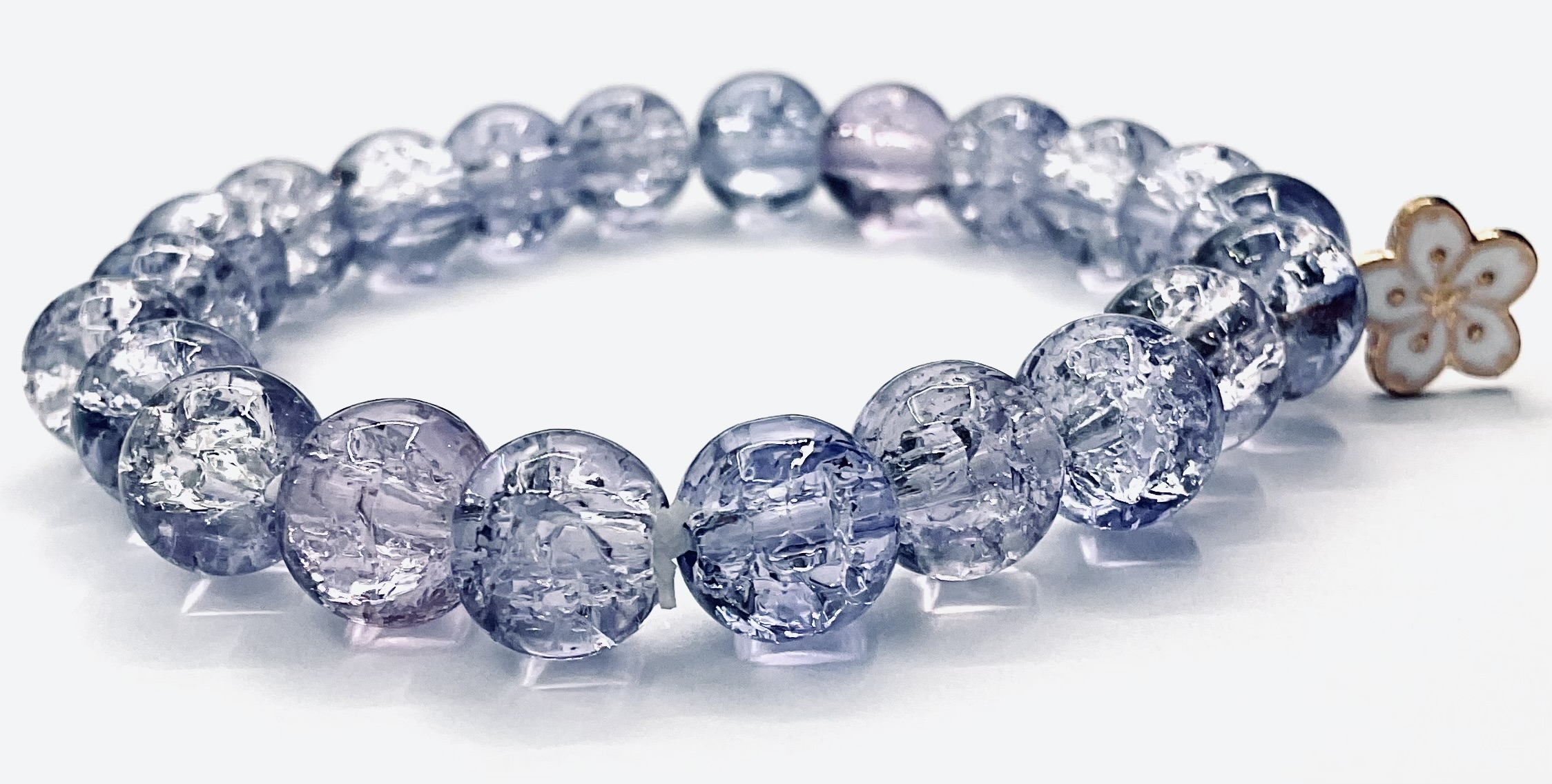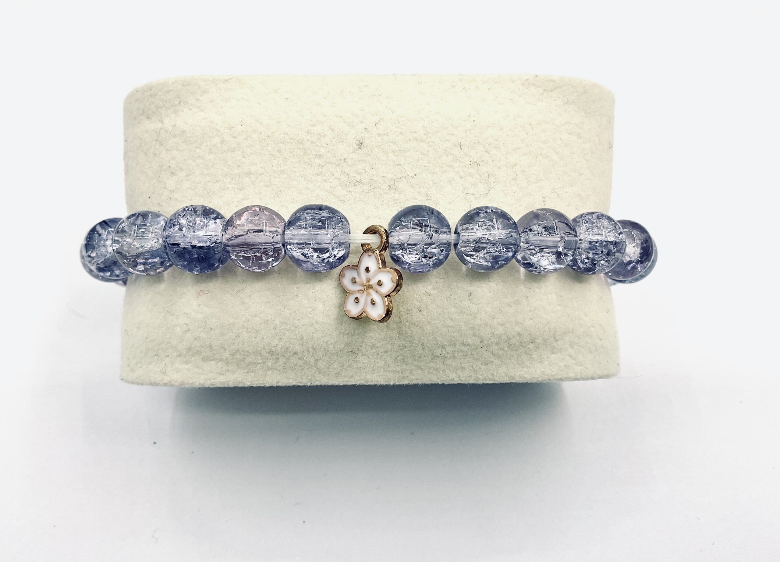 Crystal beads decorated with a white Sakura flower