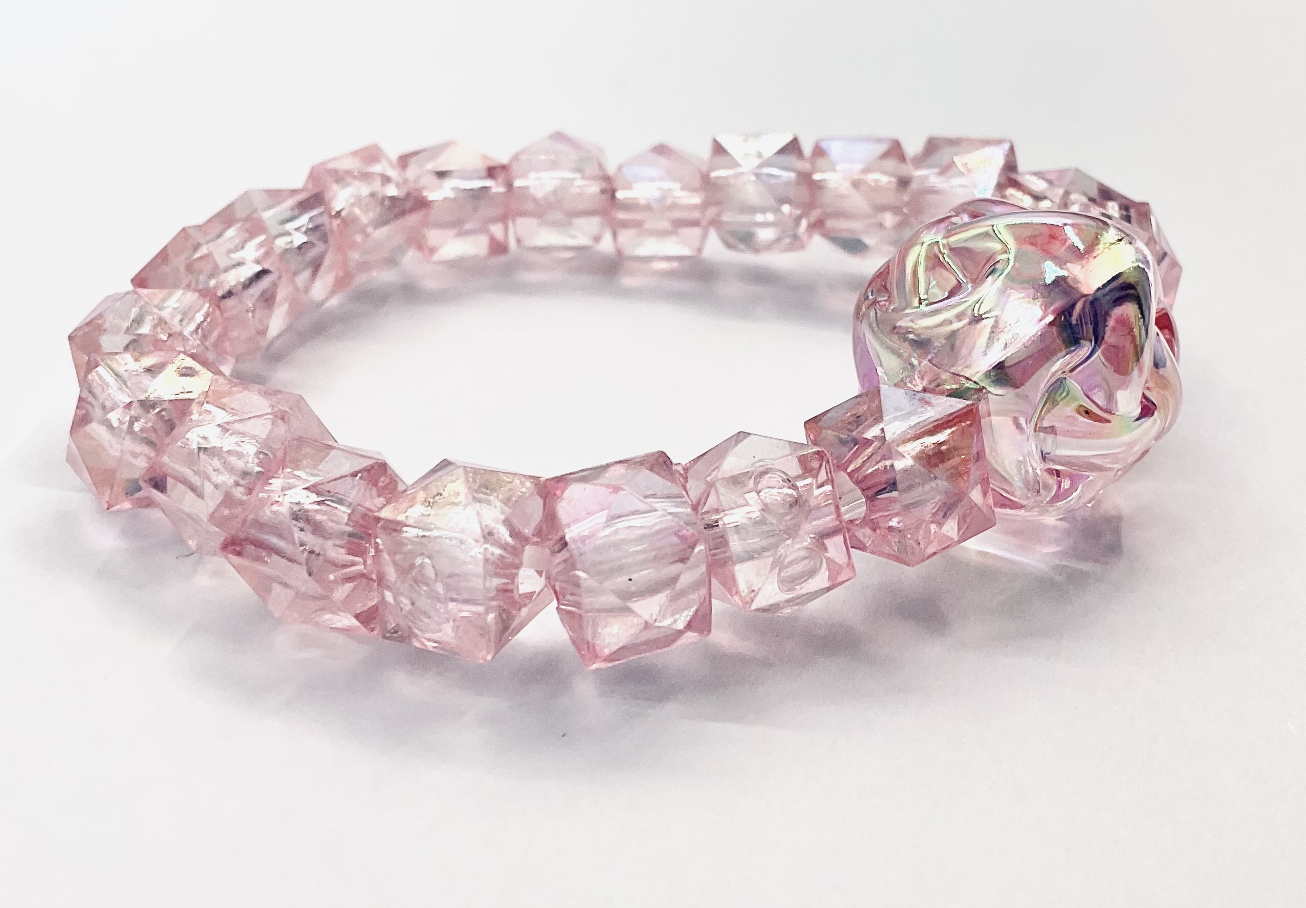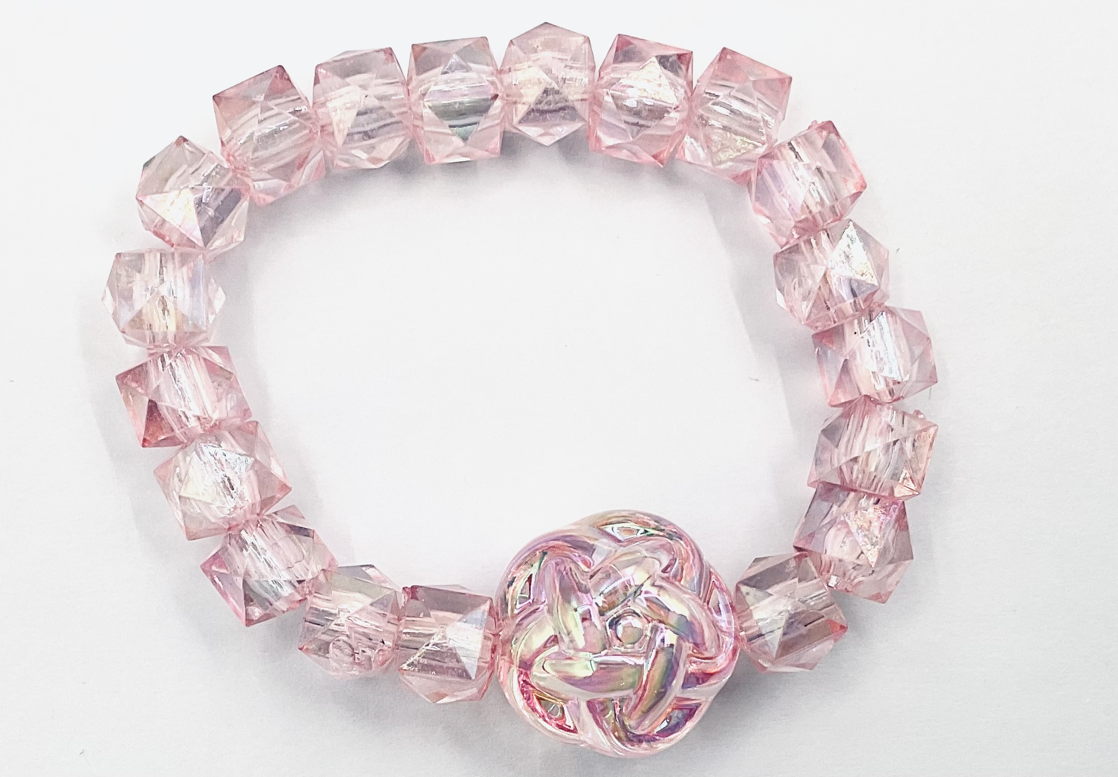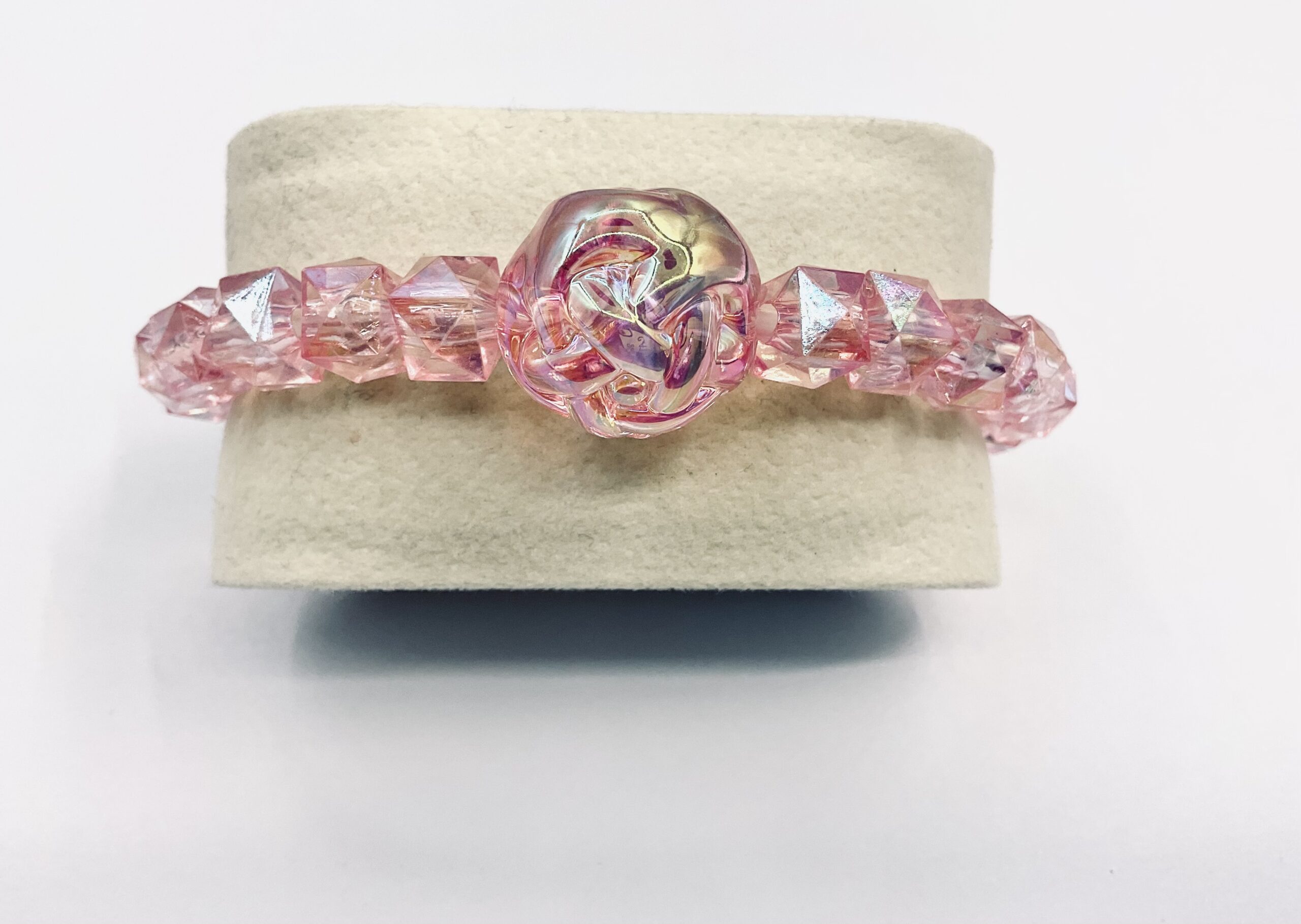 Light pink crystal square beads with a pink yarn ball decorated.